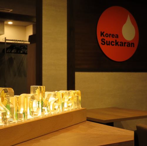 店名「Suckaran」が書かれた看板が、瓦町の街並みに溶け込みながらも存在感を放ちます。夜になると温かい光が灯り、活気あふれる店内の様子を想像させ、仕事帰りの一杯や食事への期待感を高めてくれます。初めて訪れる方も、この看板を目印に迷わずお越しいただけます。